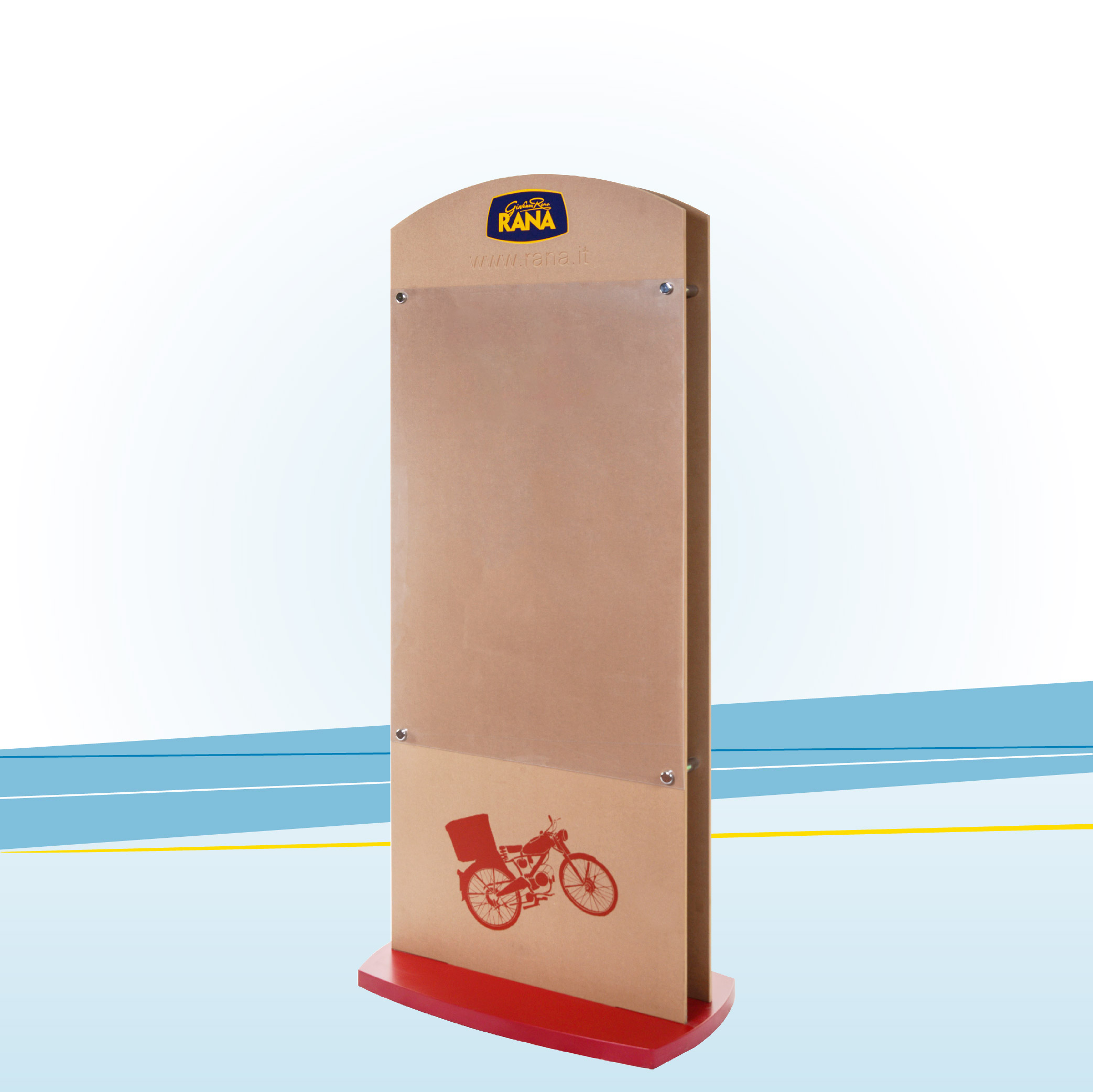 Totem informativo da terra in fibra di legno MDF grezzo con stampata digitale diretta e base verniciata