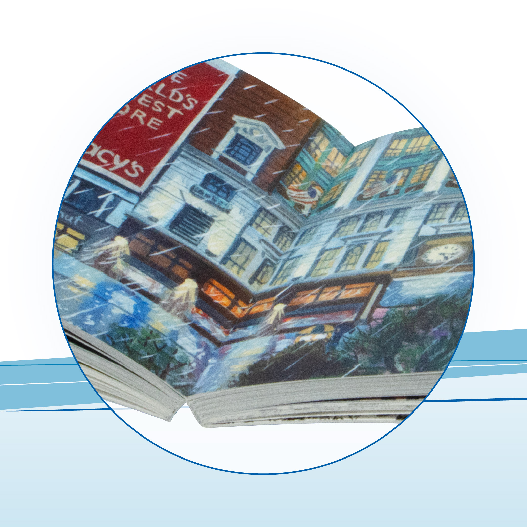 Volumi composti da copertina e interno stampati a colori e rilegati a brossura. La copertina è protetta da plastica lucida. L’interno è composto da un mix di diverse tipologie di carta, una patinata per le immagini ed una non patinata per i testi.