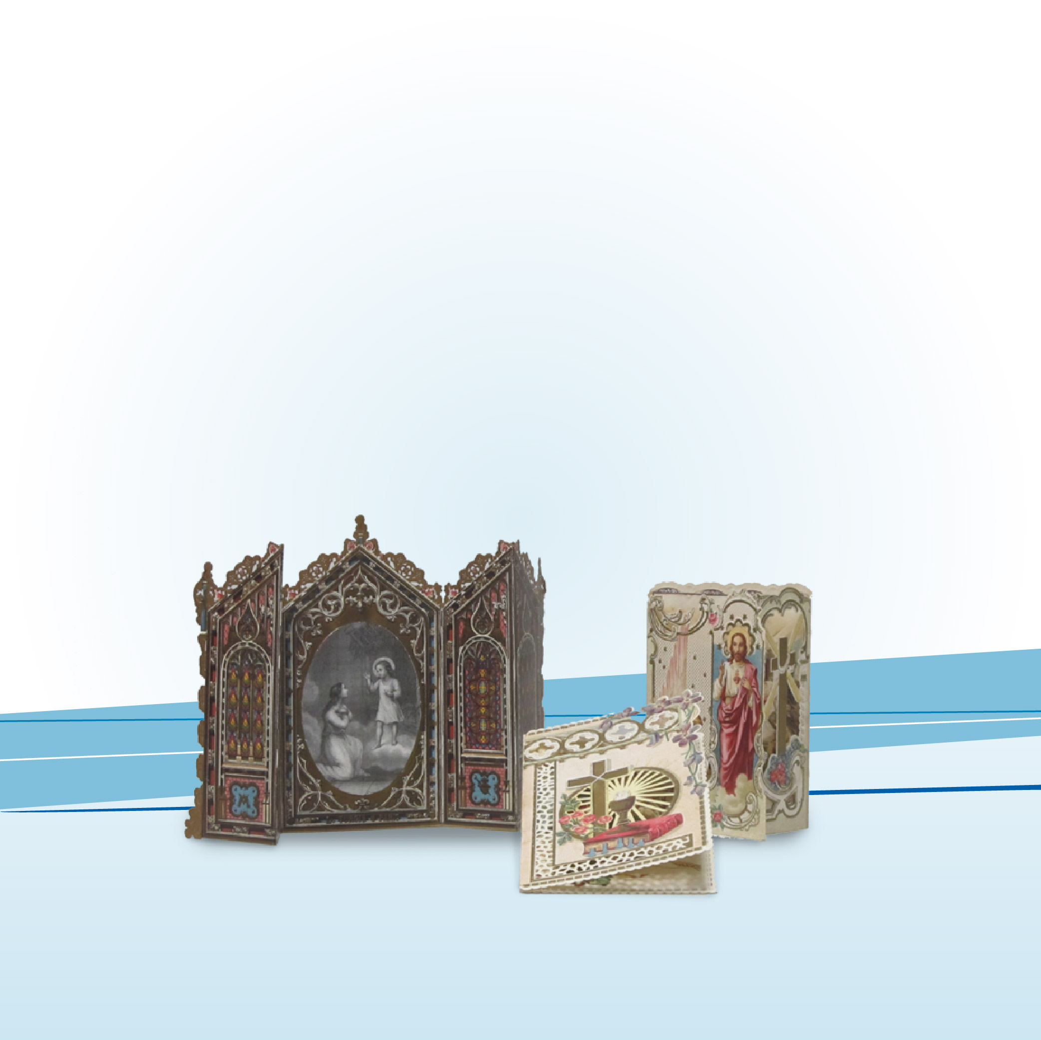 Collezione di santini realizzata per Hachette. I santini sono riproduzioni fac-simile degli originali, raccolti dai collezionisti. Sono stampati a colori, impreziositi dall’oro litografico e fustellati o forati con tecniche all’avanguardia. Sono predenti anche sbalzi a rilievo per renderli il più possibile simili agli originali.