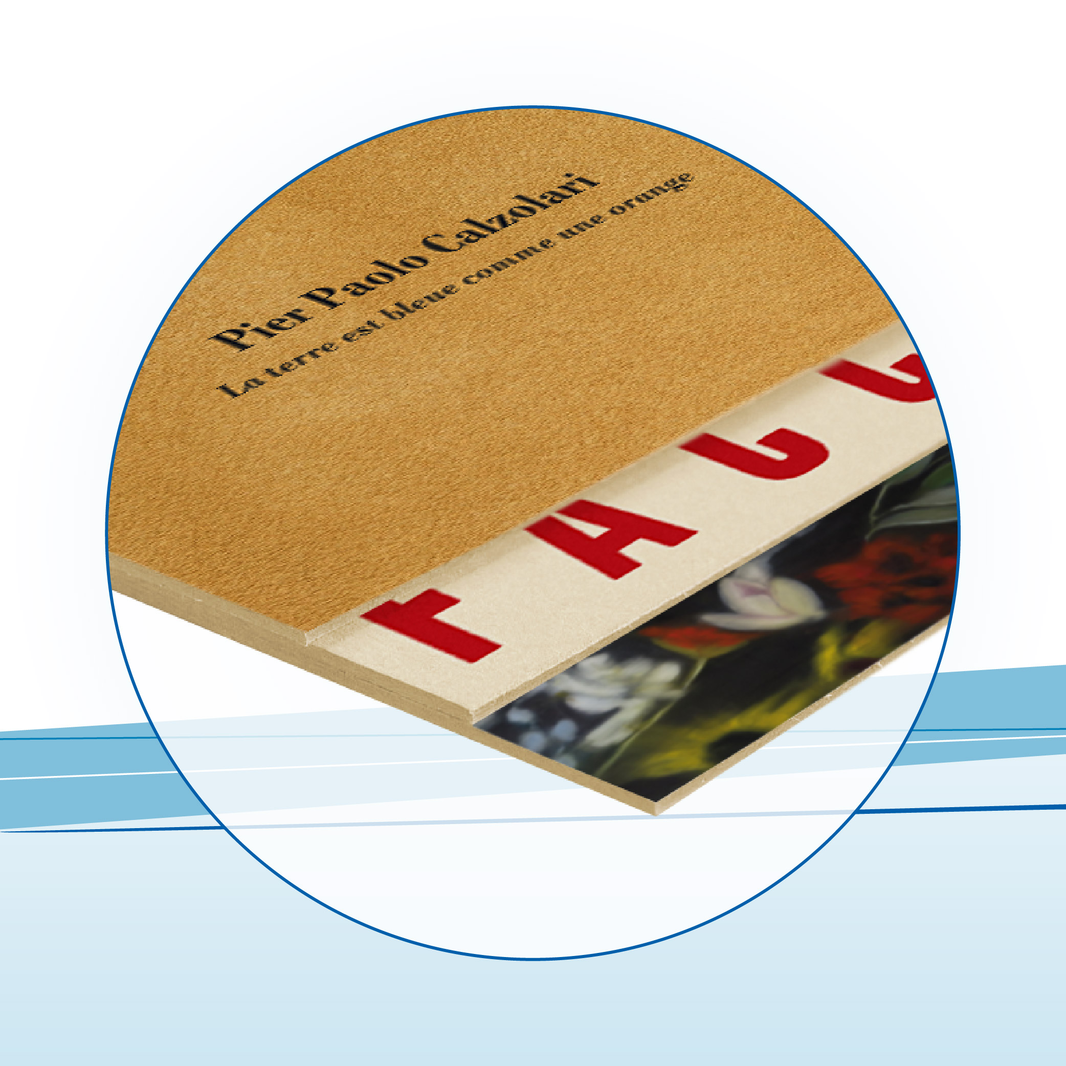 Cartoline composte da carta stampata a colori, con vernice protettiva, accoppiate ambo i lati a cartone di spessore 2 mm.